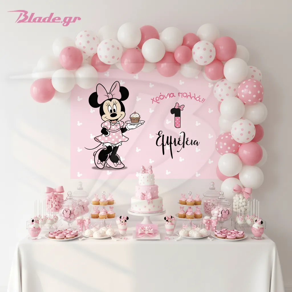 Backdrop πάρτυ Μίνυ: Το πιο γλυκό φόντο για τα πρώτα πάρτυ της μικρής σου!
