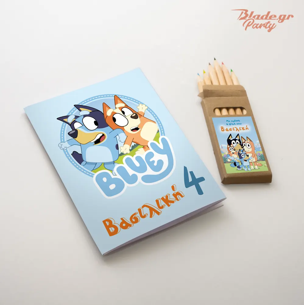 Bluey σετ δραστηριοτήτων για πάρτυ μονοσέλιδο με ξυλομπογιές