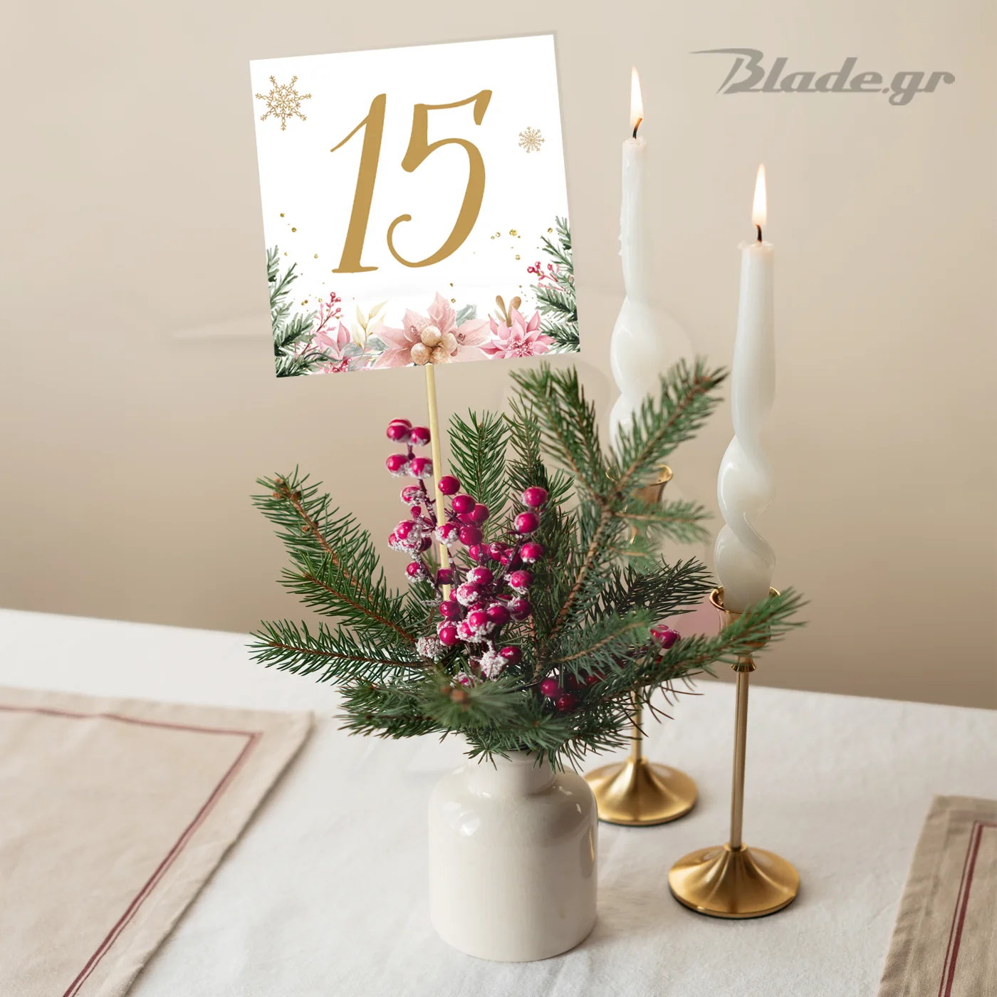 Η σωστή οργάνωση ξεκινά από το τραπέζι! Η Χριστουγεννιάτικη Καρτέλα αρίθμησης τραπεζιού Ροζ Γκι δεν είναι απλώς ένας αριθμός—είναι το στολίδι που ολοκληρώνει τη Χριστουγεννιάτικη ατμόσφαιρα της εκδήλωσής σας.