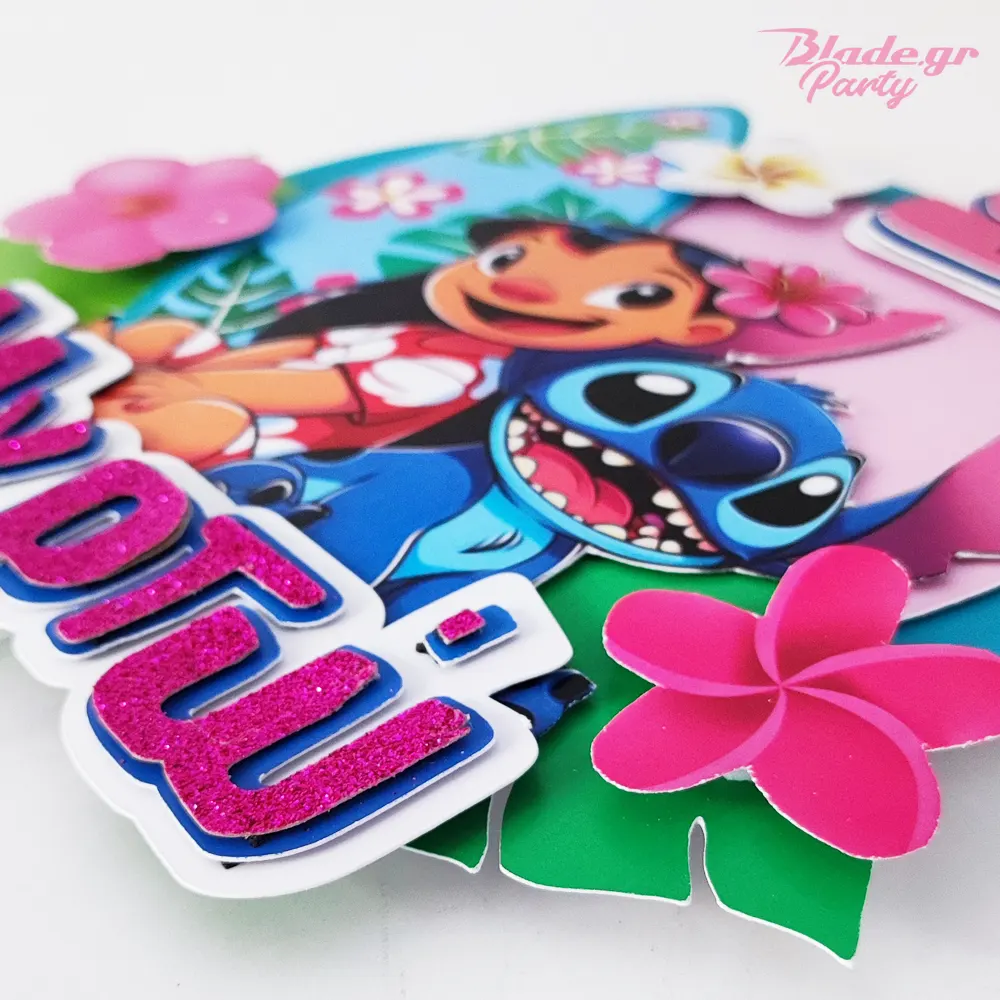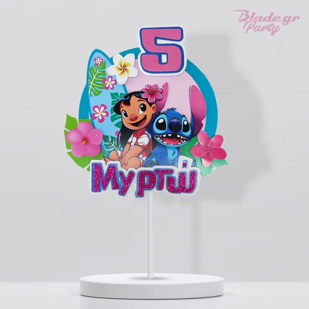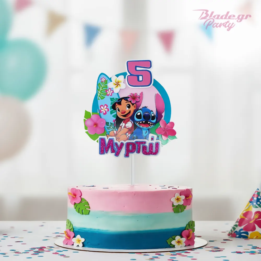 Μεταμορφώστε την τούρτα γενεθλίων σε ένα τροπικό όνειρο με το Lilo & Stitch Cake Topper! Διακοσμημένο με σανίδα του σερφ, ιβίσκους και τους αγαπημένους ήρωες της Disney. Πλήρως προσωποποιημένο με το όνομα και την ηλικία του παιδιού, προσθέτει λάμψη και χρώμα σε κάθε παιδικό πάρτυ.