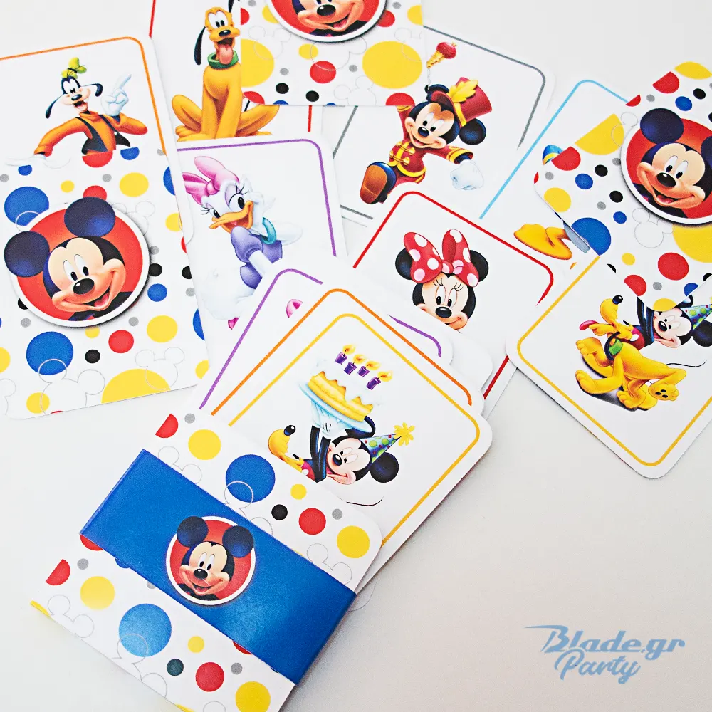 Χαρίστε στους καλεσμένους σας ένα δώρο που συνδυάζει δράση και εξάσκηση μυαλού! Οι προσωποποιημένες κάρτες μνήμης Μίκυ είναι το απόλυτο αναμνηστικό για κάθε παιδική εκδήλωση.