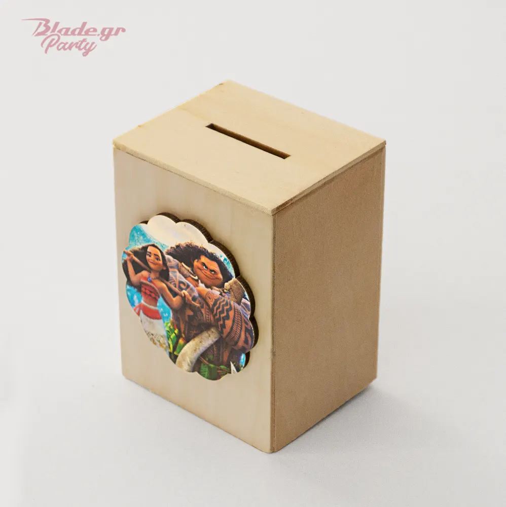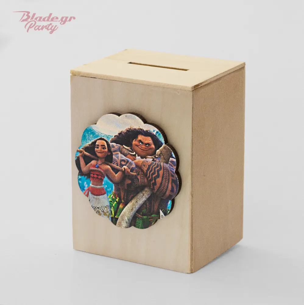 ✔️ Ξύλινος κουμπαράς Μοάνα & Μάουι για πάρτι