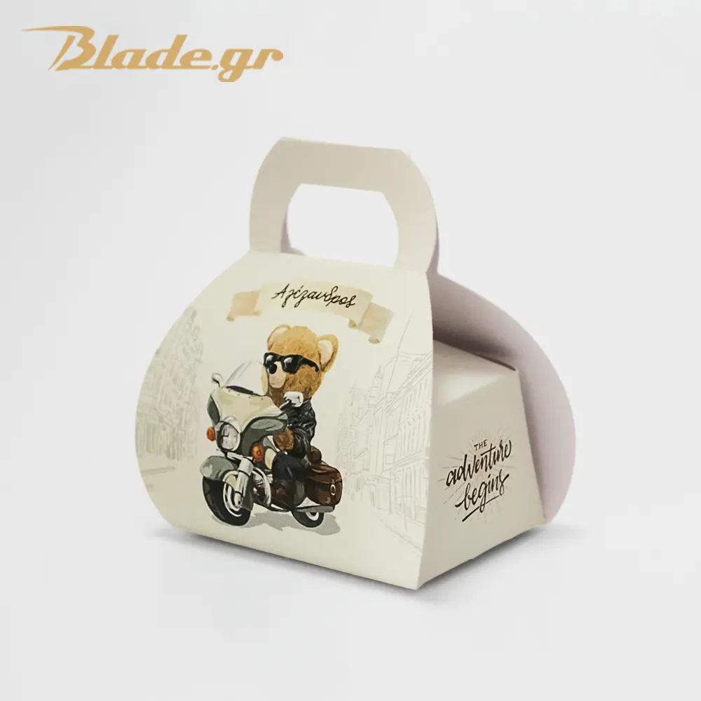 Αναζητάτε την πιο οικονομική μπομπονιέρα βάπτισης τσαντάκι χωρίς συμβιβασμούς στην εμφάνιση; Στη blade.gr έχουμε την καλύτερη πρόταση: το μικρό χάρτινο τσαντάκι με θέμα «Αρκούδος Μοτοσυκλετιστής», σχεδιασμένο για να δώσει μια cool νότα στη βάπτιση του μικρού σας.